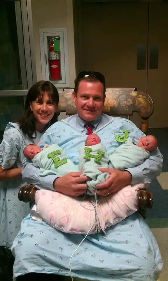 Facebook / Andy-Sarah Justice Since IVF treatment was out of their price range, the couple ultimately decided to pursue adoption to realize their dream of starting a family. Sarah was thrilled to be able to accompany the expectant mother to her first ultrasound when the couple was matched with a birth mother. However, neither Sarah nor Andy could have predicted the news they would get on that important day. The ultrasound results stunned everyone, including the doctors, the birth mother, and the Justices. A few months later, the woman gave birth to the triplets—Joel, Hannah, and Elizabeth—without incident despite the fact that she was carrying three babies. Finally parents were born to Sarah and Andy after years of waiting!