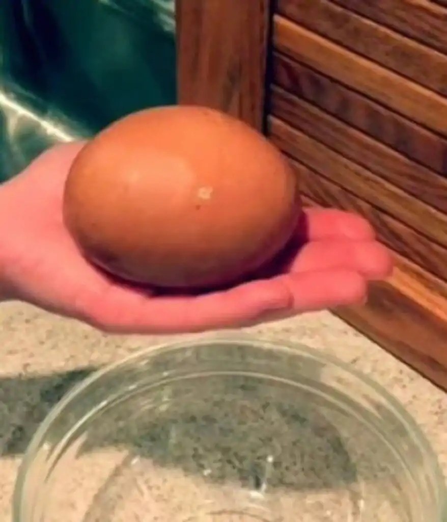 The woman’s expression was one of shock as she gazed at the discovered eggs, prompting her to set an ordinary egg next to them before cautiously cracking open one in front of the others.