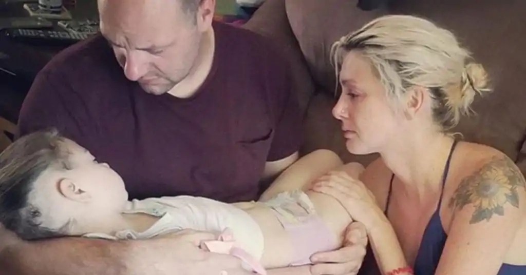 In a heartbreaking moment, parents share a poignant farewell image as they console their brave daughter, just hours before she succumbs to cancer.