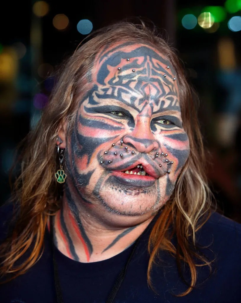 Dennis Avner is well known for his extensive body alterations and tattoos, all of which were done with the express purpose of making him resemble a female cat.